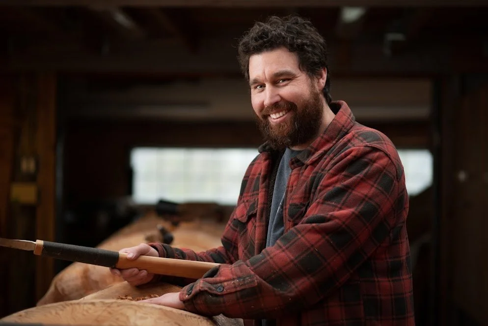 Jaalen is a father, and carver who draws his inspiration from the lands, waters and culture of Haida Gwaii. His philosophy is that with all that this land has given us, we must give back. He believes that we cannot take this place for granted and we cannot continue to rely on fossil fuels while we are fighting to protect our homelands from oil and gas industries. When asked what guides Swiilawiid’s work, Jaalen said, “a big part of why we all came together is because we’re trying to create something positive. We want to use our energies to look after this land and see some positive change.”