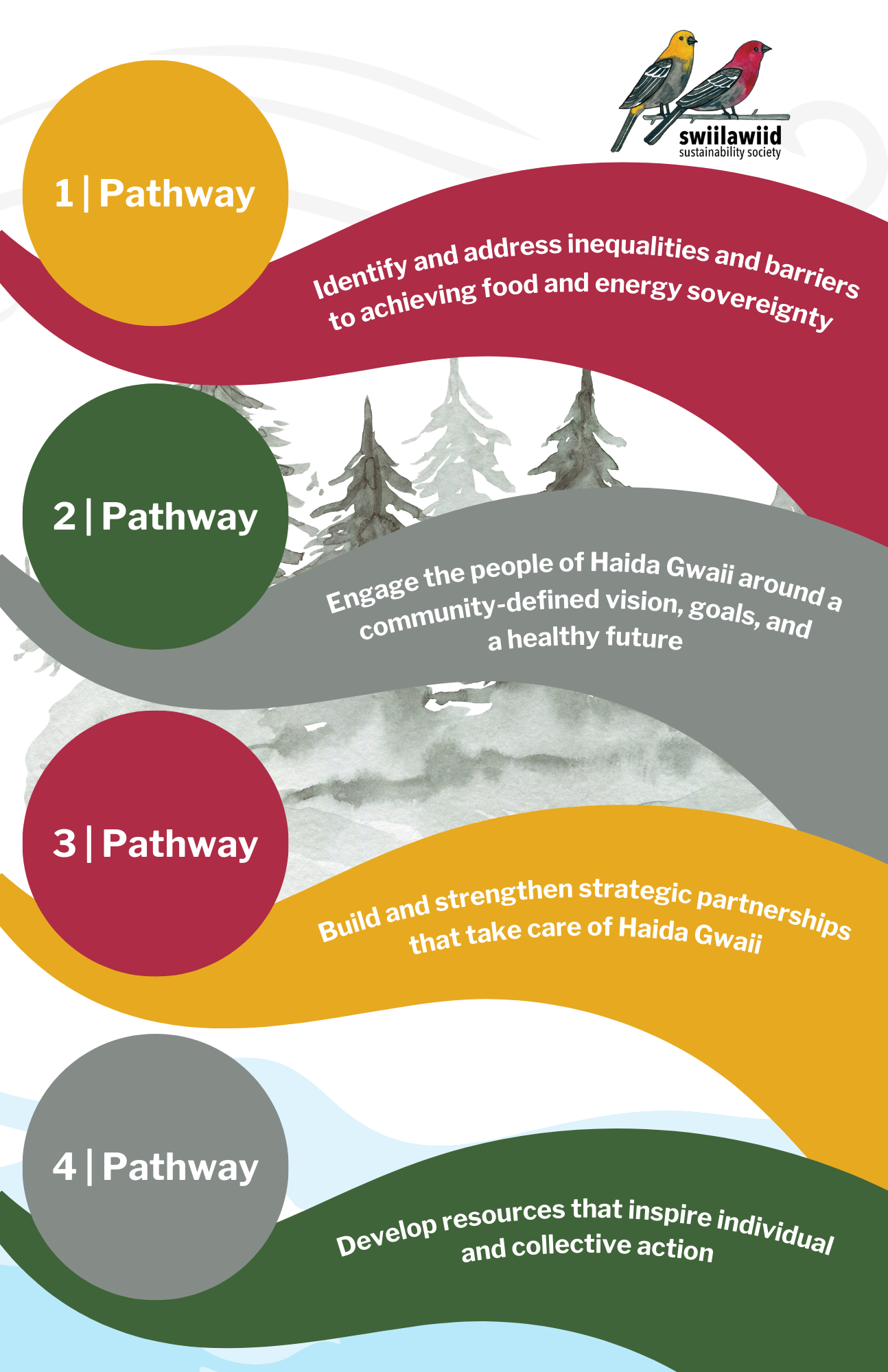 Swiilawiid is a community-centered and culturally guided organization that cares deeply about the sustainability and well-being of Haida Gwaii. We actively work to contribute to healthy communities, lands, air and waters. We are constantly inspired by the people of Haida Gwaii and hope to inspire others in our work. As Haida citizens and people of Haida Gwaii, we are proud stewards of the land and sea, and we’re committed to working with our friends and neighbours to increase Island independence, by recognizing the interconnectedness of all things, amid the changing climate.